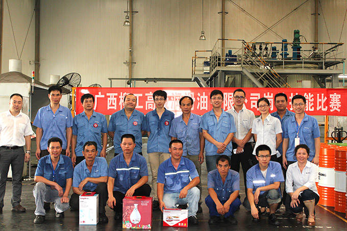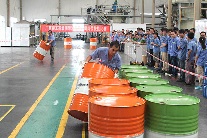 ? ? ? ? 2014年6月26日,廣西柳工高級潤滑油有限公司崗位技能比賽在調(diào)合廠正式拉開序幕。隨著裁判清脆的一聲哨響,200L油桶轉(zhuǎn)移比賽正式開始?!凹佑?,加油!”的助威聲在調(diào)合廠車間此起彼伏,經(jīng)過緊張激烈的角逐,譚定羽獲得第一名,謝永華、李占擴分別獲得第二、三名。