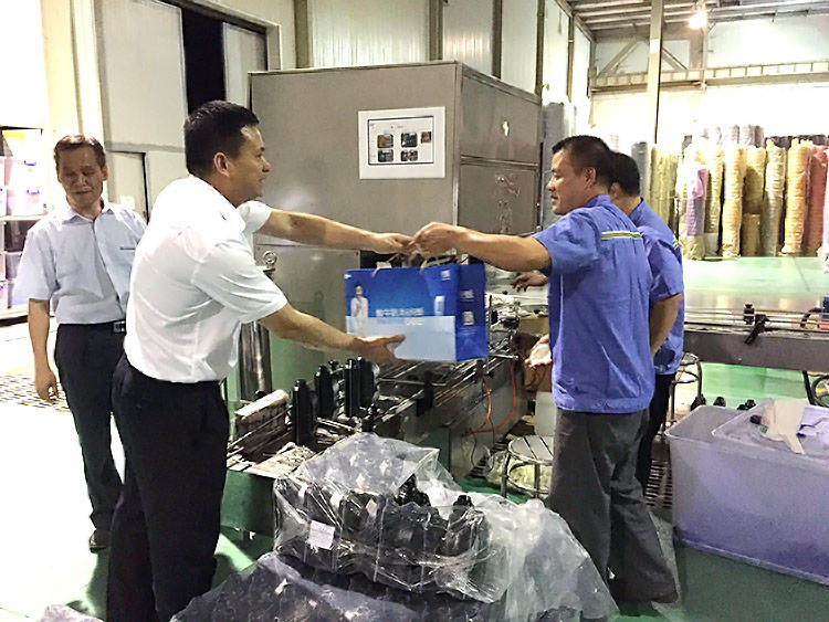 ? ? ? ?何景奇副書記拉著員工的手深情地說到“真的辛苦你們了!正是由于你們的無私奉獻(xiàn)才有了高潤的發(fā)展,謝謝你們!”何書記還強調(diào),希望大家在趕生產(chǎn)任務(wù)的同時,要注意自我調(diào)節(jié),緊記安全生產(chǎn),保證產(chǎn)品質(zhì)量,為公司的發(fā)展在不同崗位貢獻(xiàn)出自己的力量。員工們對公司領(lǐng)導(dǎo)的及時慰問感到十分鼓舞,同時表示會按時保質(zhì)完成生產(chǎn)任務(wù)。