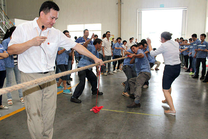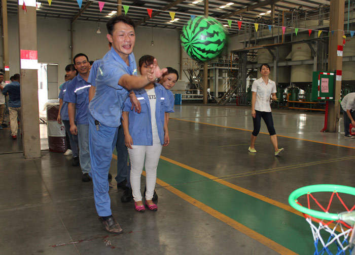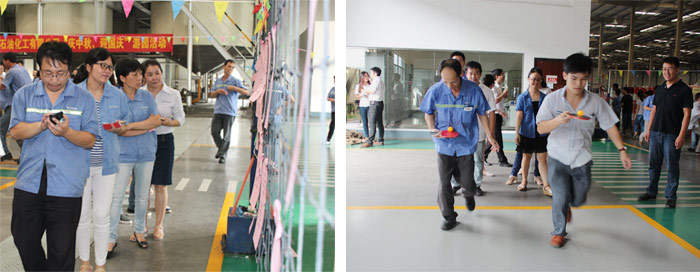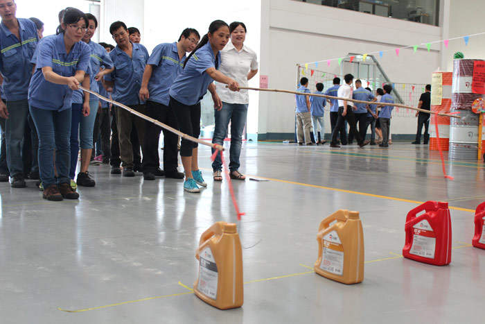 ? ? ? ? 9月25日下午15:00整,隨著一聲響亮的哨聲,游園活動(dòng)在調(diào)油車間正式開始。點(diǎn)球大戰(zhàn)、投籃高手、大步流星、眼疾手快、猜謎、繞口令這些趣味十足的游戲讓員工們玩的不亦樂乎。彰顯團(tuán)隊(duì)凝聚力的拔河比賽最為精彩,隊(duì)員們都咬緊牙關(guān),使出全身力氣,都想在緊張激烈的力量拉鋸戰(zhàn)中勝出,觀眾的加油吶喊聲連綿不斷,現(xiàn)場氣氛熱烈至極,獲勝的隊(duì)伍歡呼雀躍,擊掌慶祝。