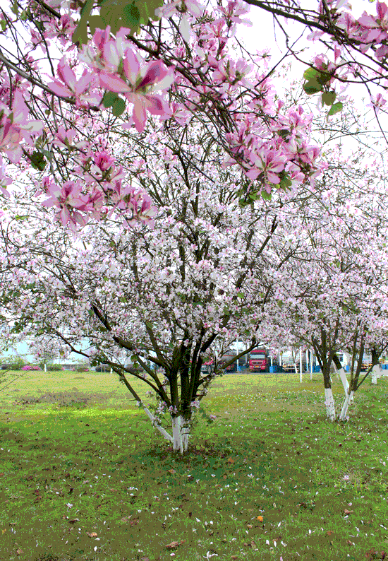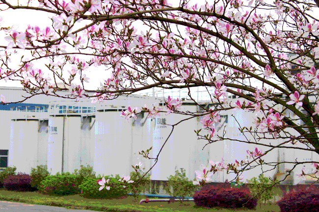 司能石油化工有限公司廠區(qū)內(nèi)的紫荊花一夜之間競相怒放,真有一番“夜來風雨聲,花‘開’知多少”的情趣!