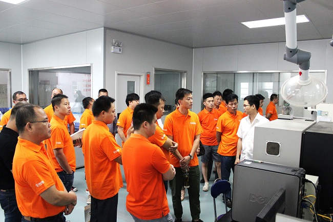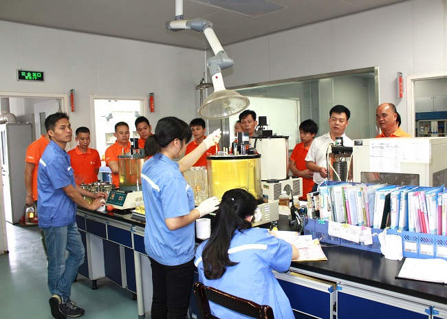 研發(fā)中心主任韋起桂帶領(lǐng)大家參觀了司能的中心實(shí)驗(yàn)室。該中心目前是廣西壯族自治區(qū)內(nèi)技術(shù)水平最高、分析手段最齊全的潤滑油分析評(píng)定中心。韋主任針對(duì)生產(chǎn)自動(dòng)化,基礎(chǔ)油采購渠道,先進(jìn)的技術(shù)檢驗(yàn)研發(fā)設(shè)備等話題與現(xiàn)場(chǎng)來賓們進(jìn)行了交流與探討,使之更加拉近與經(jīng)銷商、終端客戶的距離。