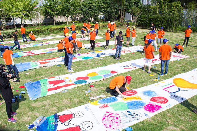在動(dòng)手畫(huà)之前,一定要各小隊(duì)經(jīng)過(guò)充分的溝通配合,才能成就最終完整的一副藍(lán)圖。