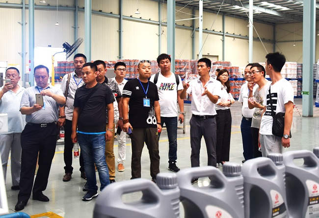 通過(guò)司能雄厚實(shí)力的分享與演說(shuō),大家對(duì)司能充滿(mǎn)了無(wú)限好奇。19日早晨近180余人報(bào)名參觀溧陽(yáng)工廠。當(dāng)天溧陽(yáng)氣溫較高,但嘉賓們熱情向往不畏高溫頂著烈日來(lái)到工廠參觀考察、洽談交流。參觀嘉賓分成3個(gè)小組,依次參觀了研發(fā)中心、油樣儲(chǔ)存室、灌裝線(xiàn)、儲(chǔ)油區(qū),現(xiàn)代化自動(dòng)設(shè)施,參觀嘉賓紛紛掏出手機(jī)拍照留影,嘉賓被工廠先進(jìn)的自動(dòng)化生產(chǎn)線(xiàn)所吸引,充分展現(xiàn)了司能的雄厚實(shí)力和先進(jìn)技術(shù)水平。