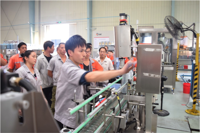 本次質(zhì)量月競賽活動由知識競賽和技能競賽兩部分組成。知識競賽以知識搶答的形式展開,有小包裝4組、中控室1組、200L 1組、調(diào)油班1組、設(shè)備和內(nèi)勤1組,共8個參賽小組24名員工參加競賽。技能競賽又分為封箱機調(diào)試速度比拼、旋蓋機調(diào)試速度比拼、油墨噴碼機調(diào)試速度比拼、200L空桶滾桶速度比拼、濾袋更換速度比拼、俯臥撐、扳手腕7項比賽內(nèi)容,共有20余名員工參加比賽。